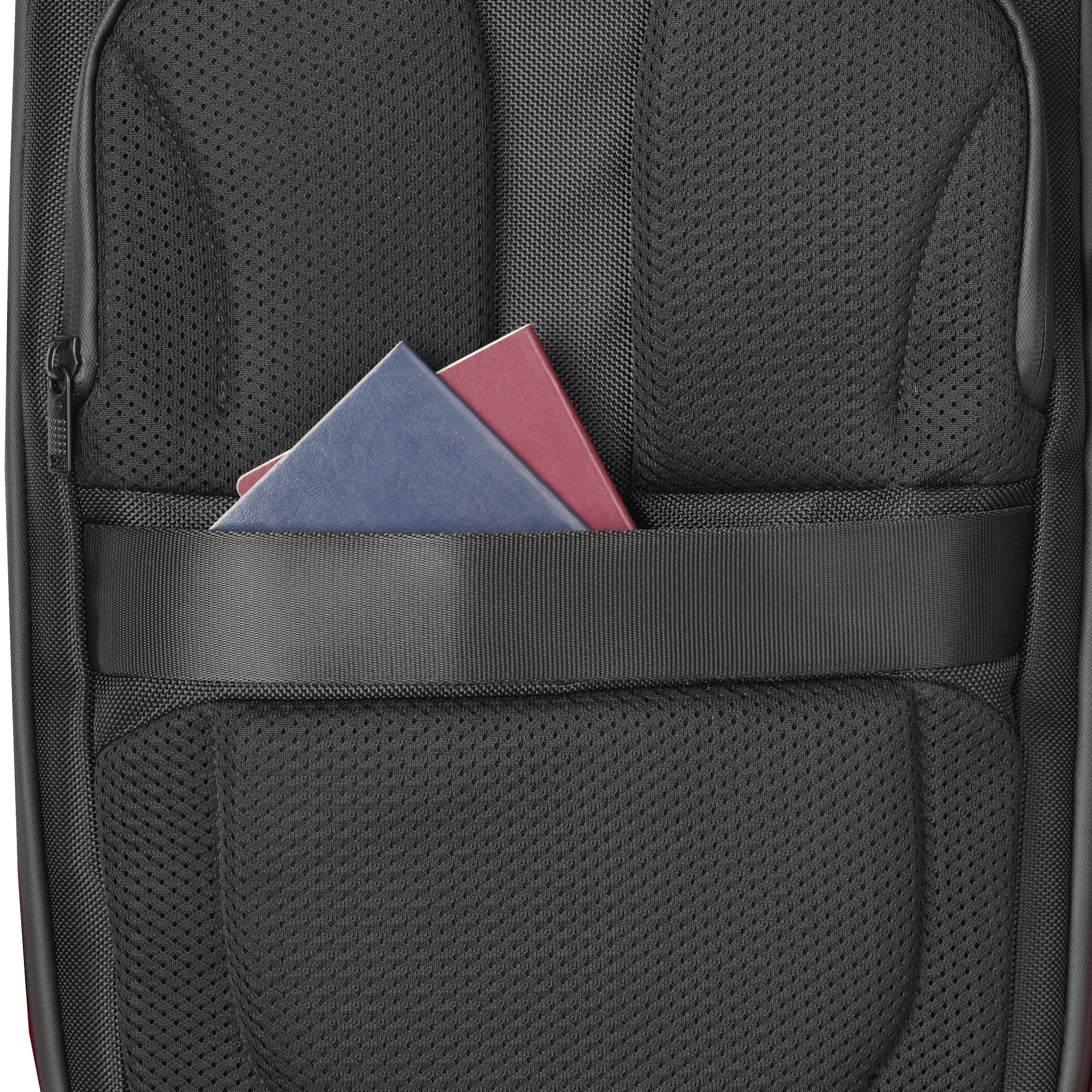 - Hidden pocket in daypack compartment for an AirTag and in the rear for passports