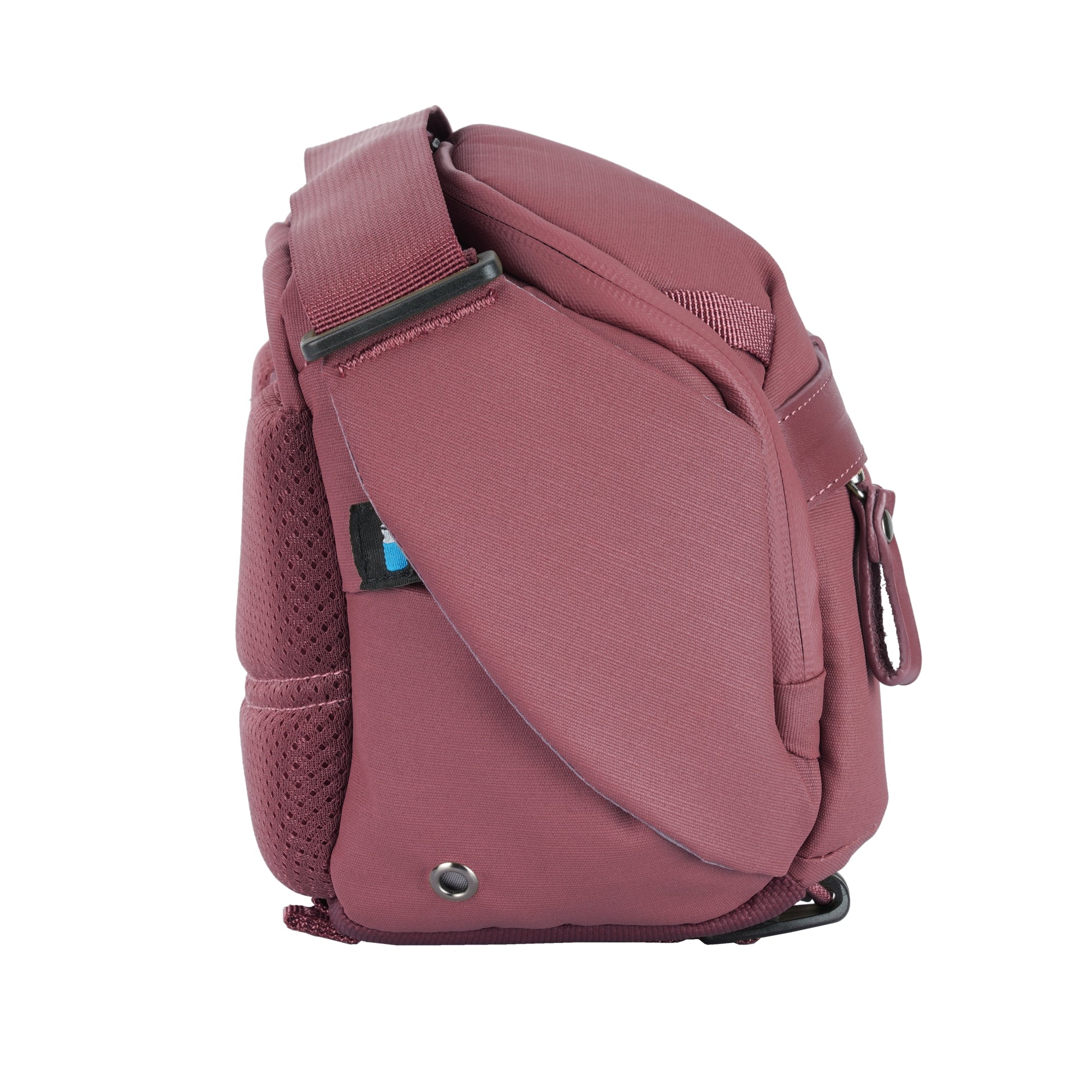 The shoulder bag includes multiple storage pockets. On the left side (as the bag faces you) there is a water bottle pocket stashed away. Sealed pockets on the inside of the top flap for SD cards and accessories, while the sealed pockets on the outside of the top flap and on the front of the shoulder bag can be used for other items.