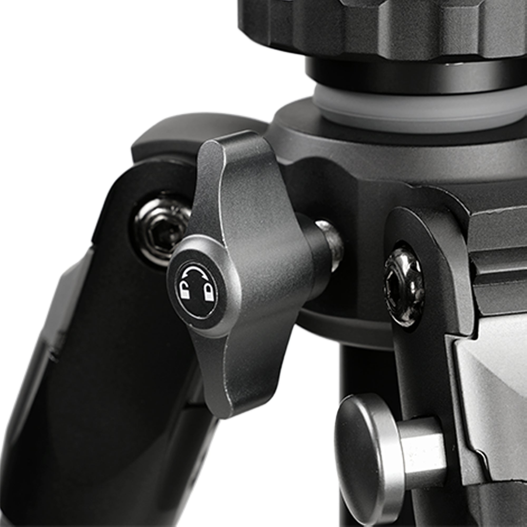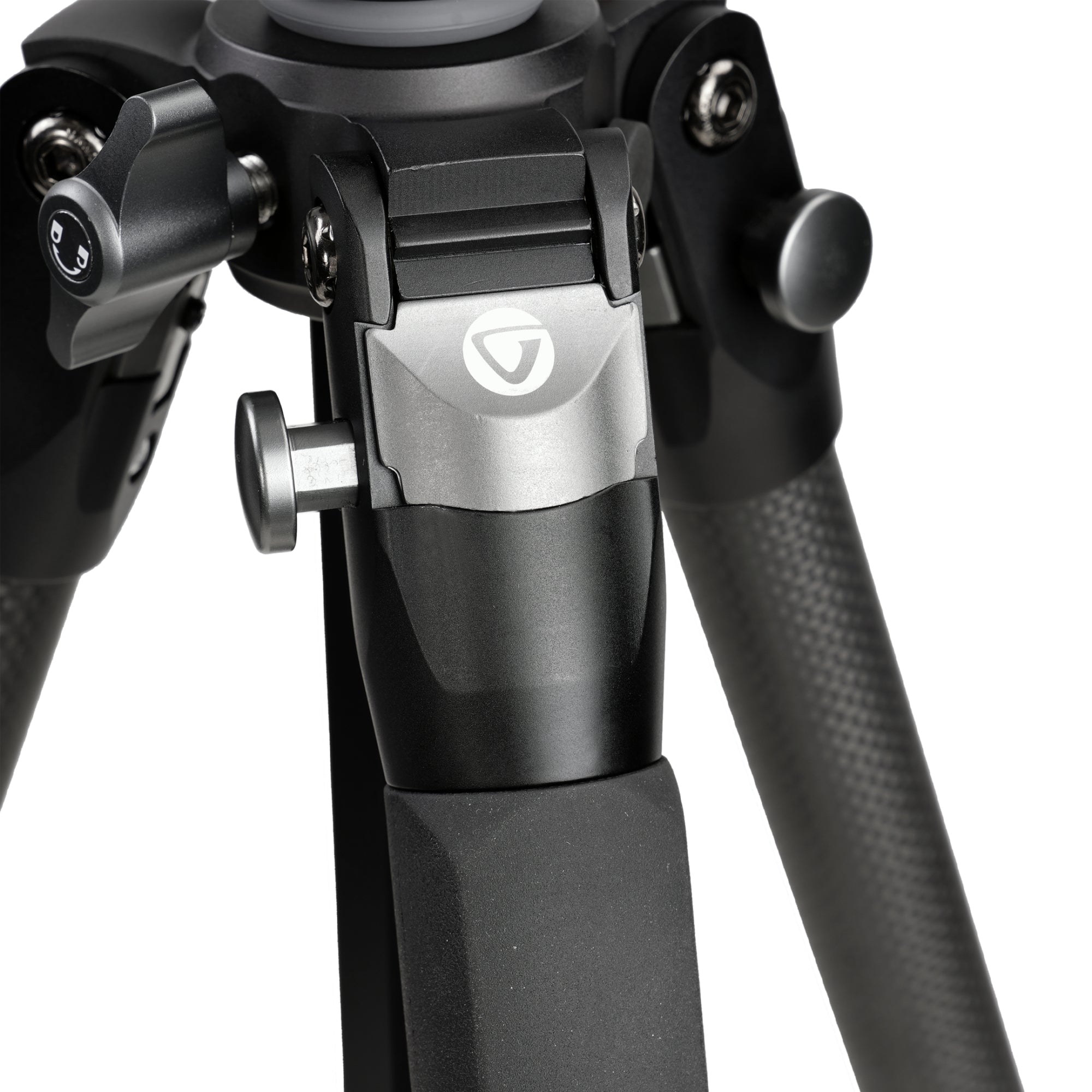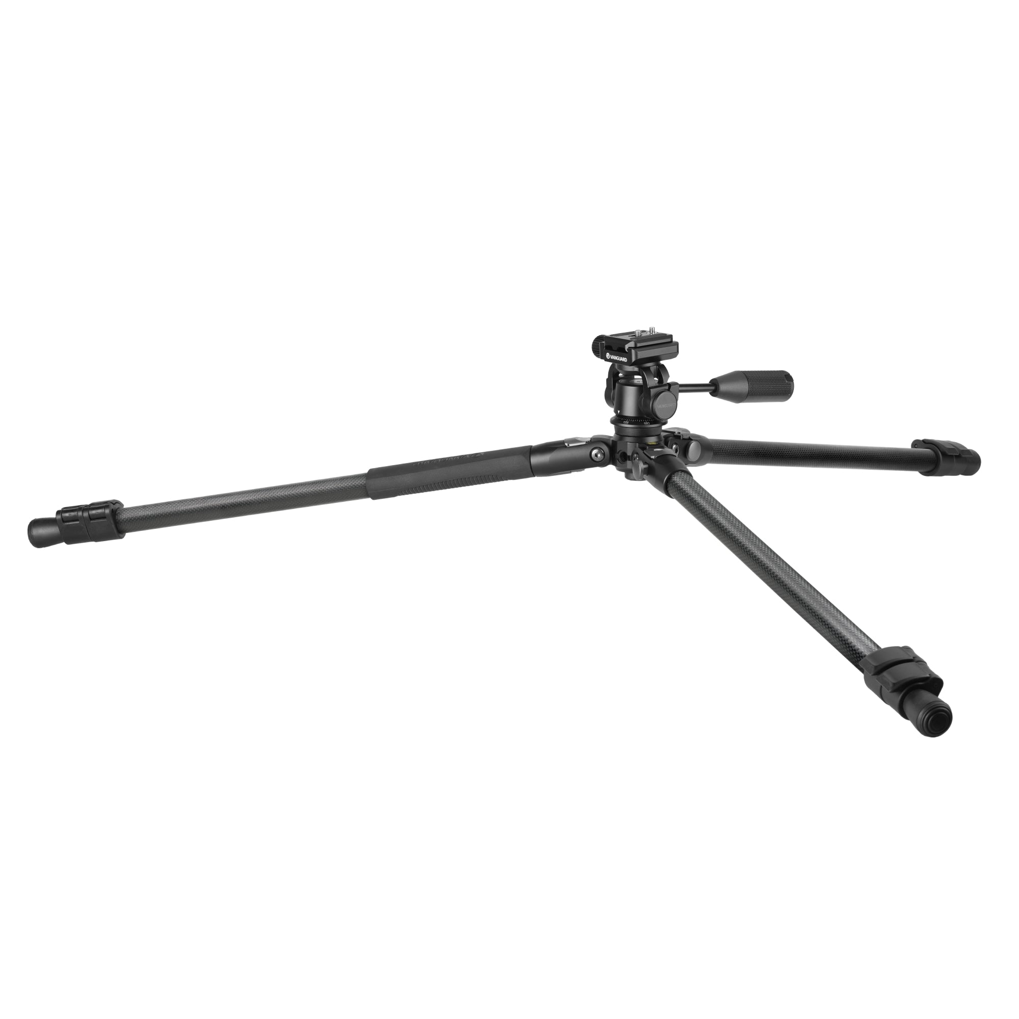 The 3-section 26mm diameter carbon fibre legs have three easy set leg angles for 20°, 50° and 80° leg angles, with flip locks for easy deployment and rubber feet.