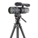 On top of the tripod, the VEO PV-14 Arca compatible video head offers a smooth fluid movement with a single 215mm long handle that can be set up on either side of the head for left or right handed use.