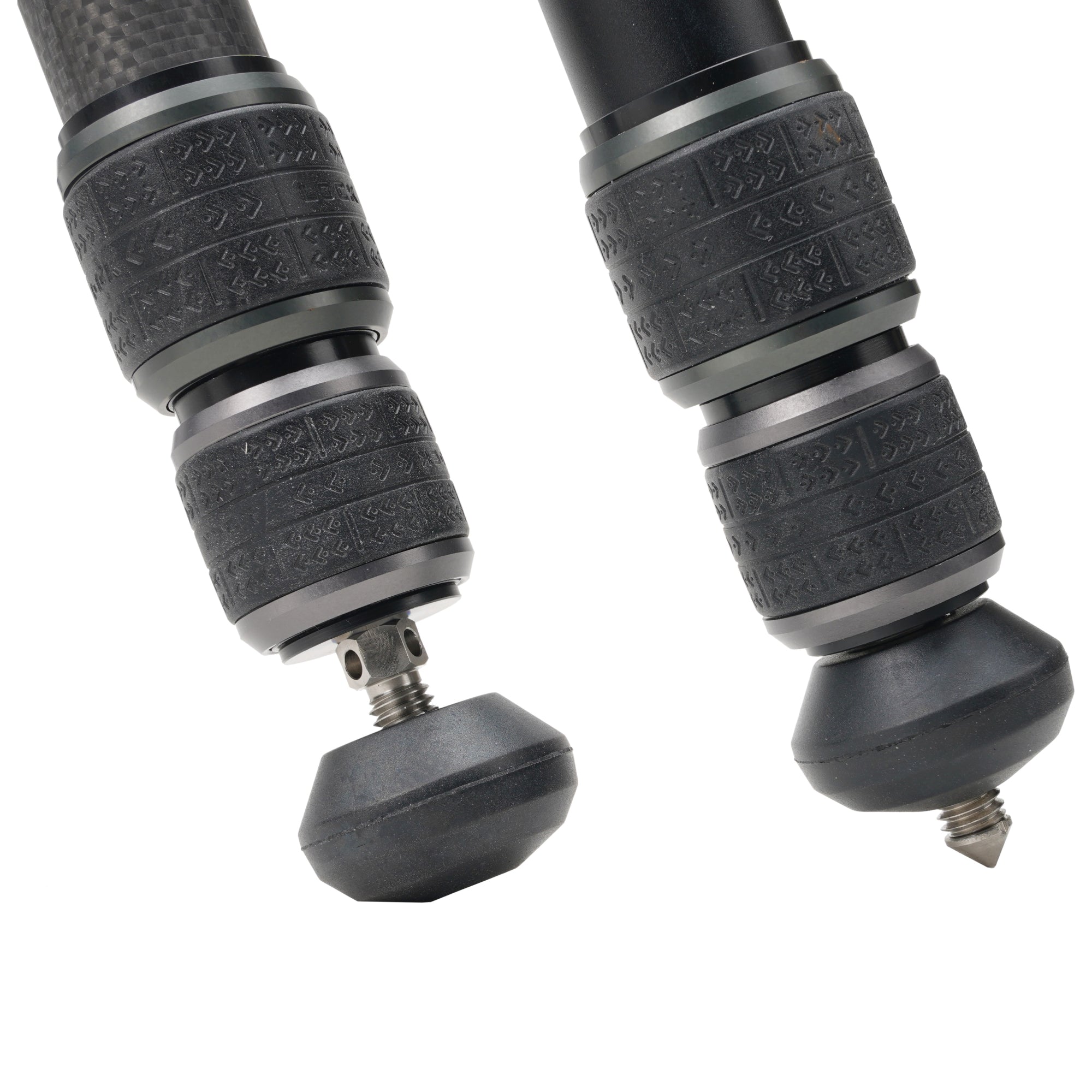 - Retractable rubber or spiked feet and luxury padded tripod bag.
