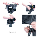 The comprehensive design simplicity ensures no waste of time fumbling while trying to get the cape on and fitting it to the gear. This flat spread out cover lands right on your camera and drapes around in split seconds. All you need to do next it secures the Velcro around the lens, and the hook/loops underneath to prevent it from blowing up in a gust of wind.