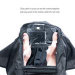 The ALTA RAIN COVERS have an incorporated accessory pocket under the rear viewing window and all come with an included pouch, so that they can be folded up neatly and fitted compactly in any bag, or pocket.