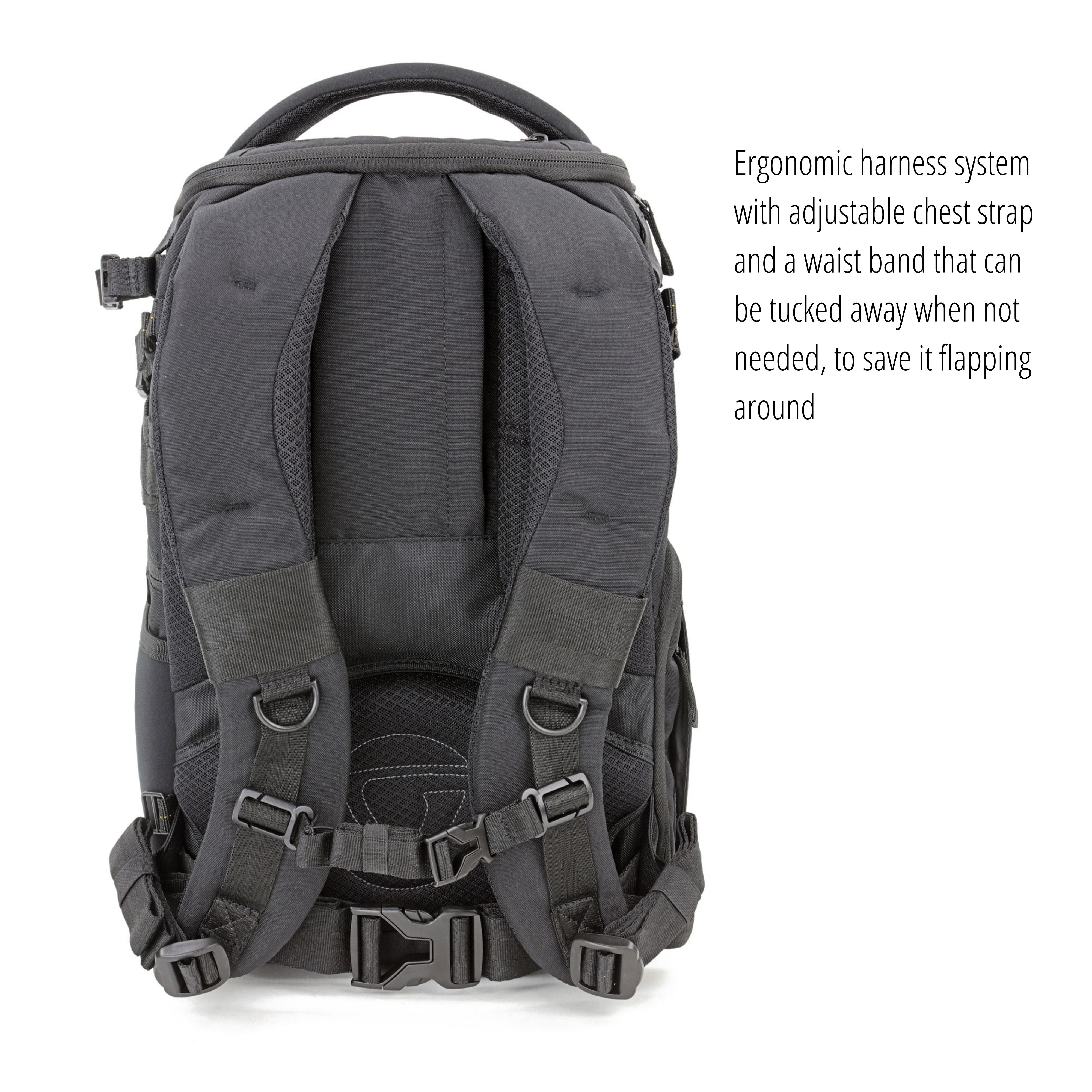 - Ergonomic Air System harness that includes a waist strap that can be tucked away when not needed