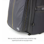 In both size modes the ALTA RISE 45 ensures padded protection. Ideally the capacity is designed to hold a Pro DSLR, 3+ lenses (up to 24-70mm f/2.8) a flash and accessories in the large dedicated camera compartment, and when the +6 width is expanded you can utilise the full length padded compartment to store personal essentials, or carry along a laptop or tablet less than 9.7", (compartment is 200x10x245mm).