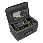 As an example, it can fit a DSLR camera with attached lenses, up to four extra lenses, flash unit and accessories. All the dividers are customisable and so you can adapt it to fit any gear that could include larger lenses, a drone or any other kit you want to keep safe when not in use.
