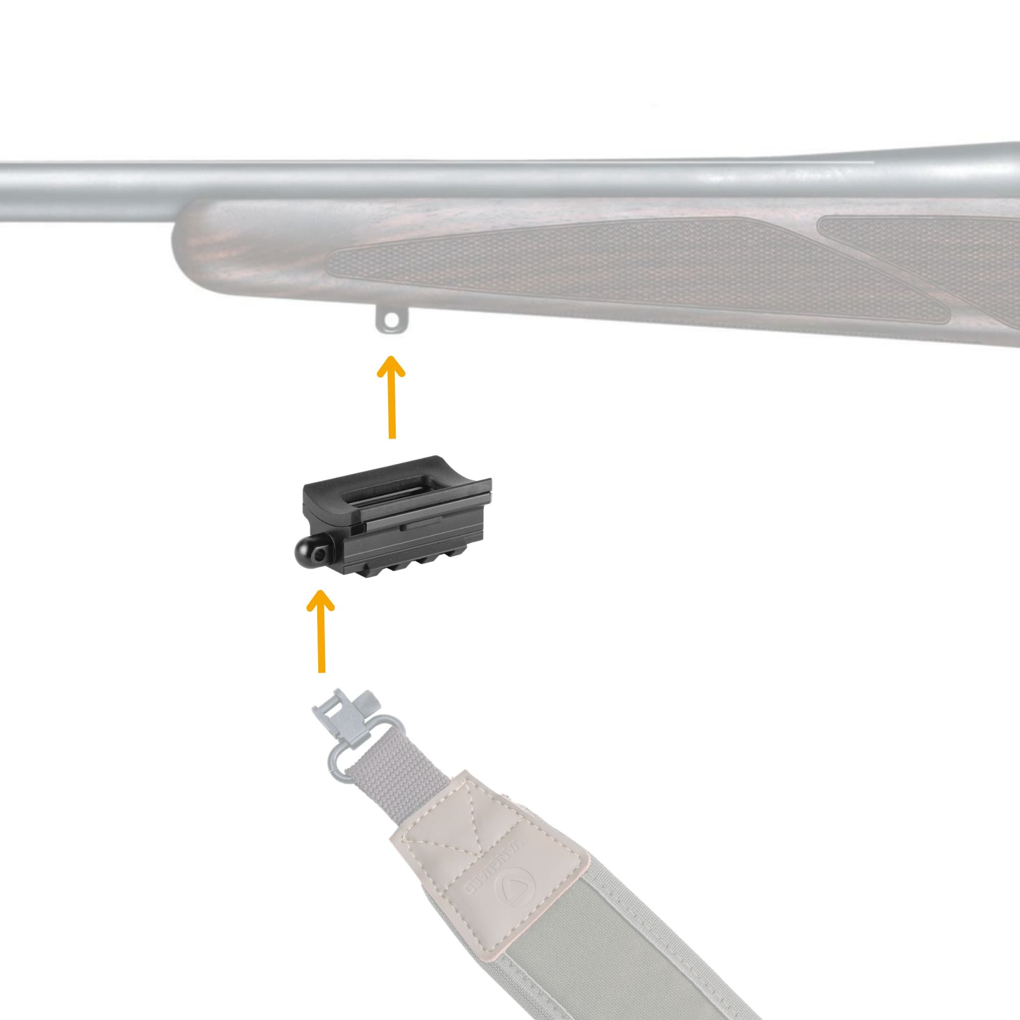 The bipod comes with an Endeavor Pic Rail that is fitted to the sling stud of your rifle. You then simply attach/remove the bipod to this rail as needed (or you can connect it directly to your rifle without the rail provided if it has a built in Picatinny rail). You can then attach your sling to a sling stud incorporated into the Endeavor Pic Rail. You can also purchase additional Endeavor Pic Rails to attach to other rifles, allowing you to use this bipod across a range of rifles.