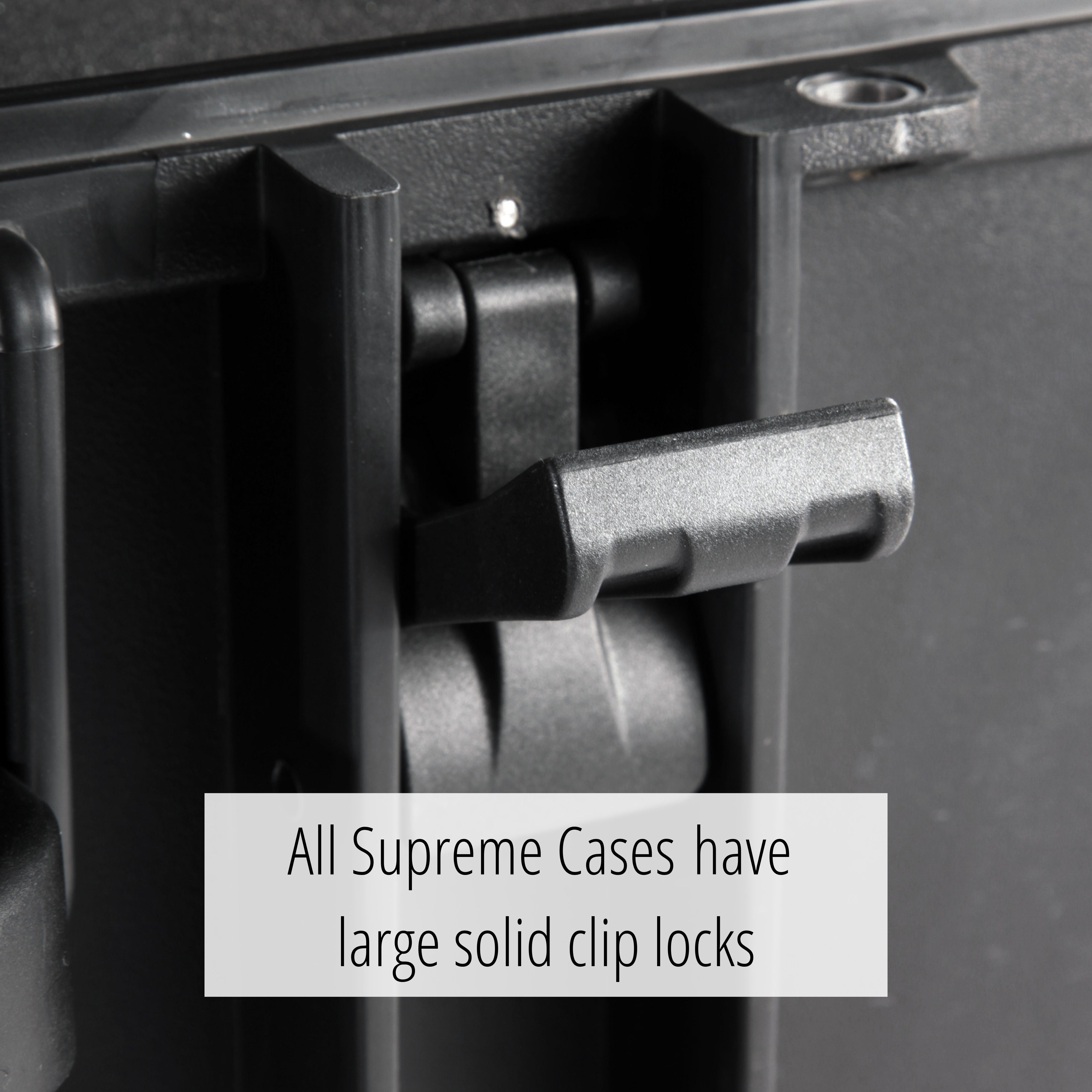 To keep your equipment secure, the Supreme Cases have steel-reinforced lock holders. Secure with a good padlock and no-one will be able to get in without some serious cutting equipment. Just don’t forget your padlock key or combination or you’ll find out just how difficult they are to get into!