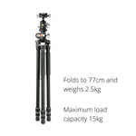 This model includes a VEO BH-160S Arca Compatible, Dual Axis Ball Head that delivers the most solid grip possible, allowing the kit to handle a maximum load capacity of up to 15kg.