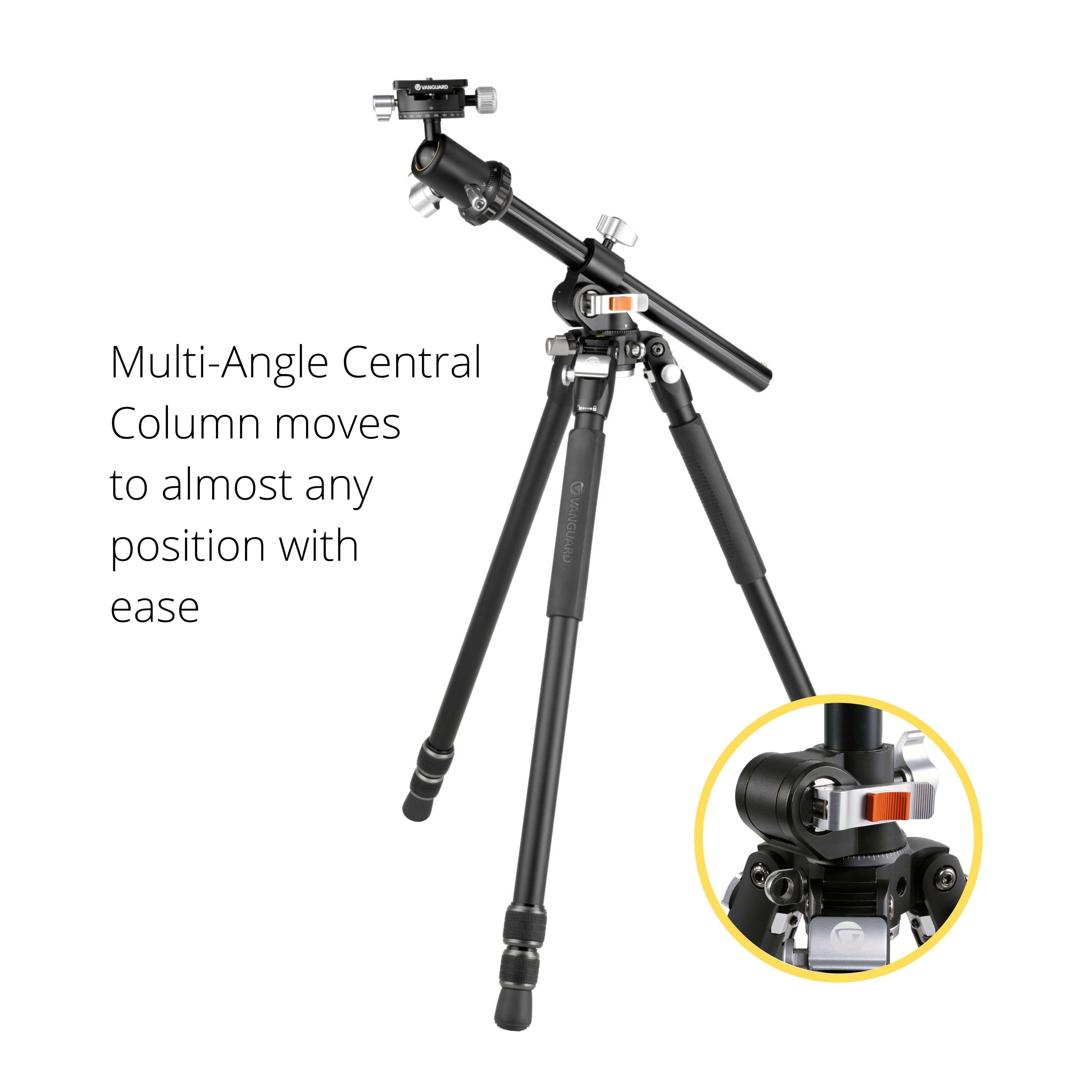 - Multi-Angle Central Column moves almost 360° in any direction for the perfect setup for any shot,