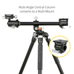 You can also use the multi-angle central column as a Multi-Mount using the VEO+ MA1 Adaptor (included). The VEO+ MA1 simply slides onto the central column to create another attachment point, allowing you to attach additional equipment to the tripod to enhance any shot, be it a laptop, display, lighting, microphone and more.
