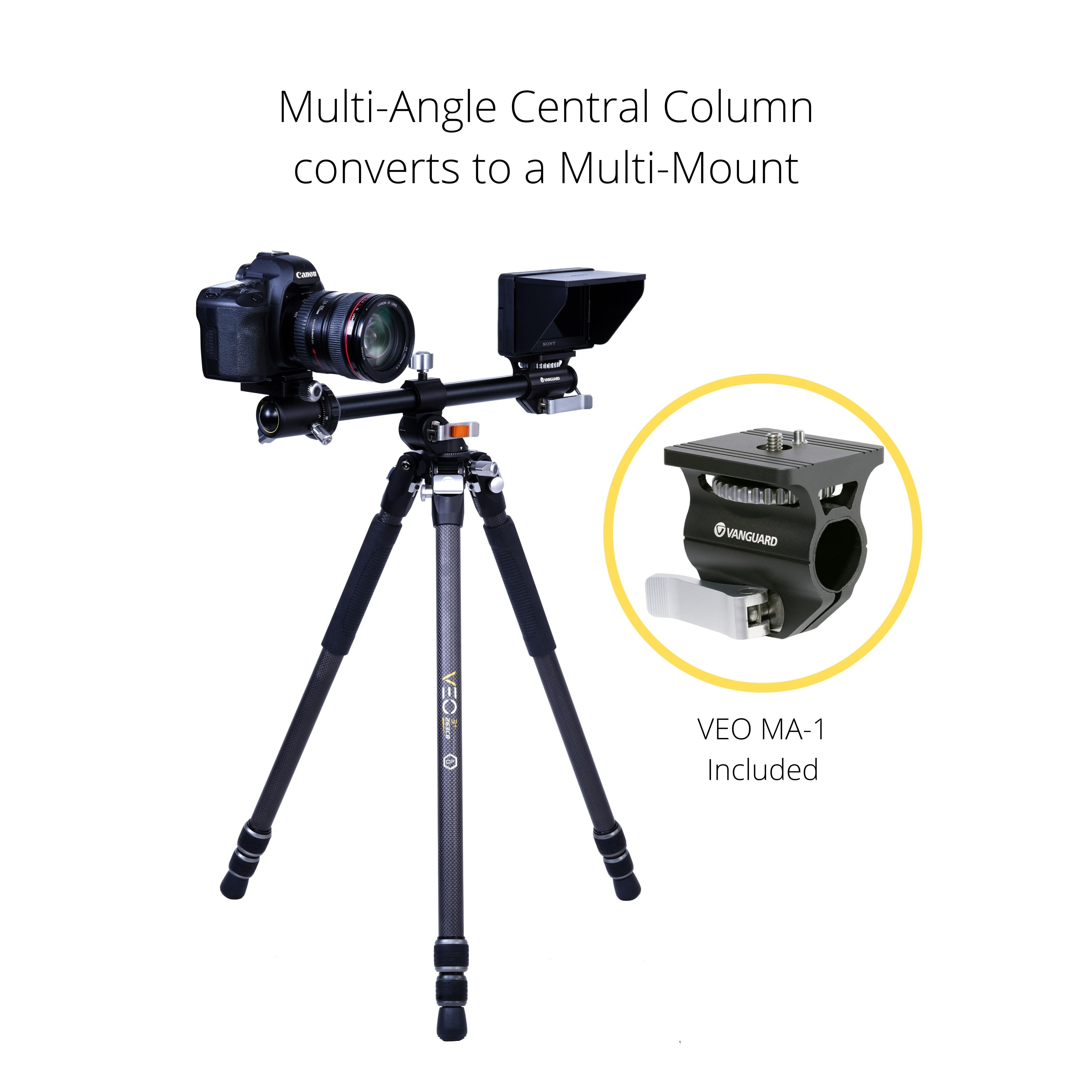You can also use the multi-angle central column as a Multi-Mount using the VEO+ MA1 Adaptor (included). The VEO+ MA1 simply slides onto the central column to create another attachment point, allowing you to attach additional equipment to the tripod to enhance any shot, be it a laptop, display, lighting, microphone and more.