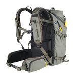 As this series is designed to carry larger kits over extended distances, extra attention has been applied to the ergonomics to deliver maximum comfort. This includes a reinforced aluminium frame which increases the level of protection to your kit and stiffens the rear of the backpack. This is shaped to follow the curve of the upper spine. On the back itself there is a padded waist cushion and shoulder cushions, with a wide air-flow system. The shoulder straps are also well padded with an adjustable chest strap, and there is a padded waist belt to spread the load. The waist belt can be removed or fixed around the bag when not in use, so it doesn't flap on shorter trips.