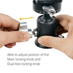 Alternatively, the dual axis ball head allows you make micro adjustments using the most appropriate axis, without needing to loosen the main ball joint and risk losing the overall setup.