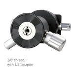 - 55mm diameter base and fits any tripod (includes fittings for 3/8" or 1/4" threads)