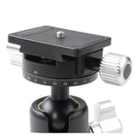 - Arca compatible ball head with removable, anti-slip screws on the base of the quick release plate