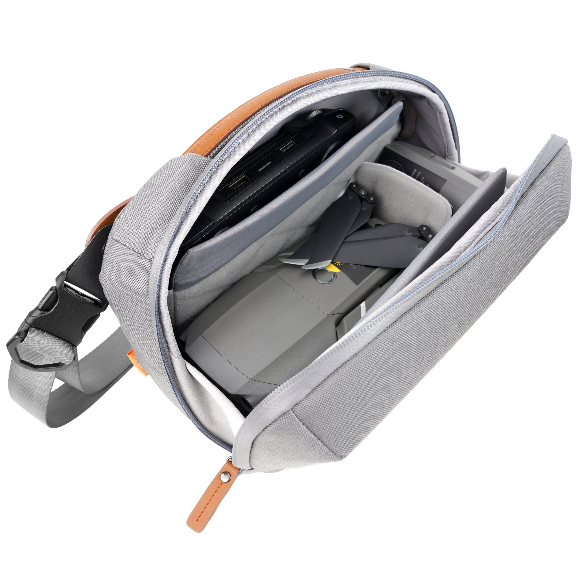 The VEO CITY CB29 is the mid-sized cross body bag at 6 litres, and includes three adjustable smart dividers so you can configure the interior for your photography or vlogging kit. It's perfect for a micro four thirds camera or a smaller mirrorless camera, 1-2 lenses (up to 24-70mm f2.8), and has a 260 x 180mm compartment for tablets up to 8", and a host of other clever storage solutions for your kit. Alternatively you can set it up to carry a drone kit, such as a DJI Mavic Mini.