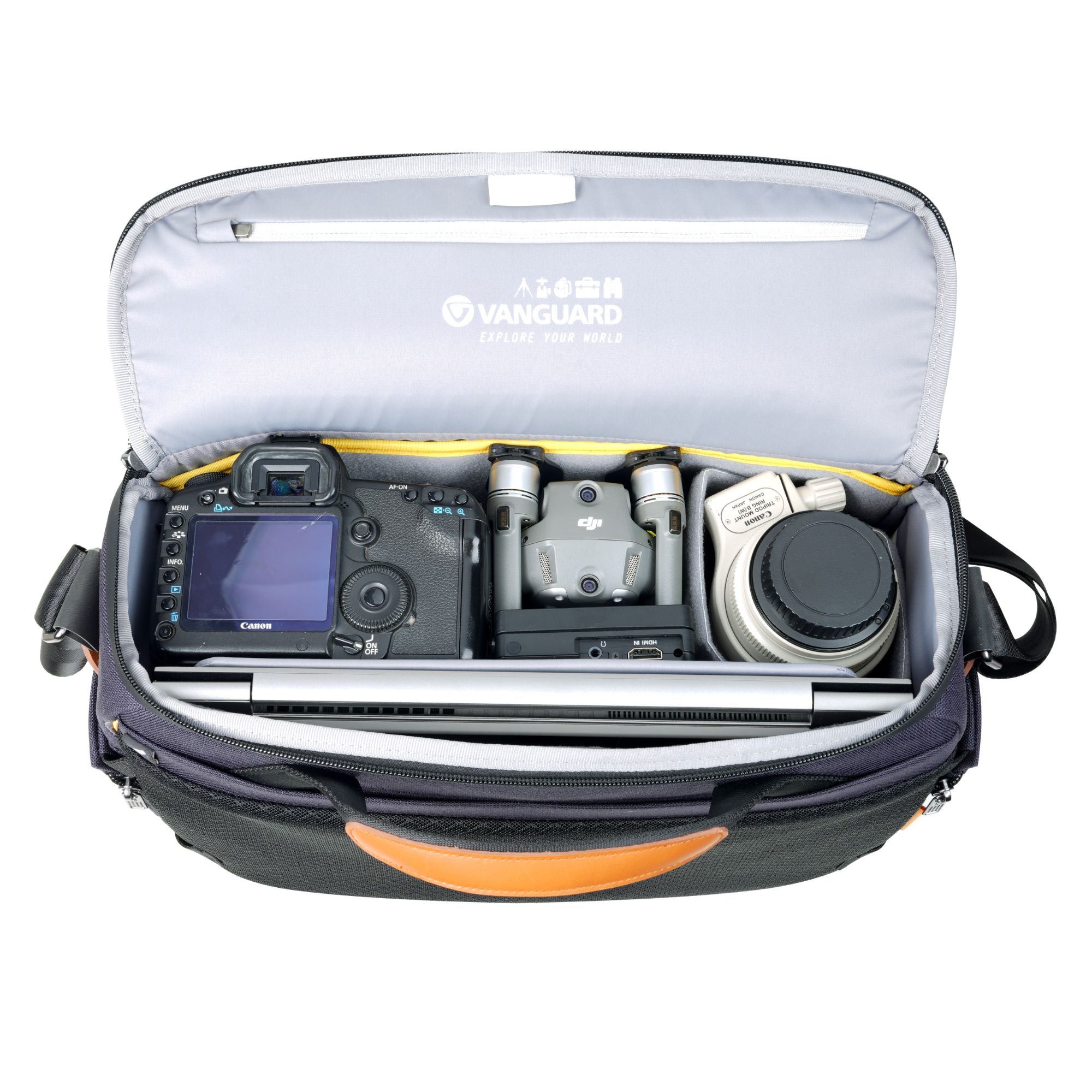 These shoulder bags are constructed with Air Textured Yarn that creates a tough 1050D nylon shell and is coated in a durable water repellent, with 2-layers of water-resistant  polyurethane and waterproof zips to create a tough, weatherproof shell, with a separate rain cover for the wettest days. This outer shell then covers high density, shock absorbent cross-linked polyethylene (XPE) foam under armour that keeps your kit safe from the knocks and bumps of everyday life.