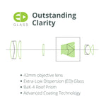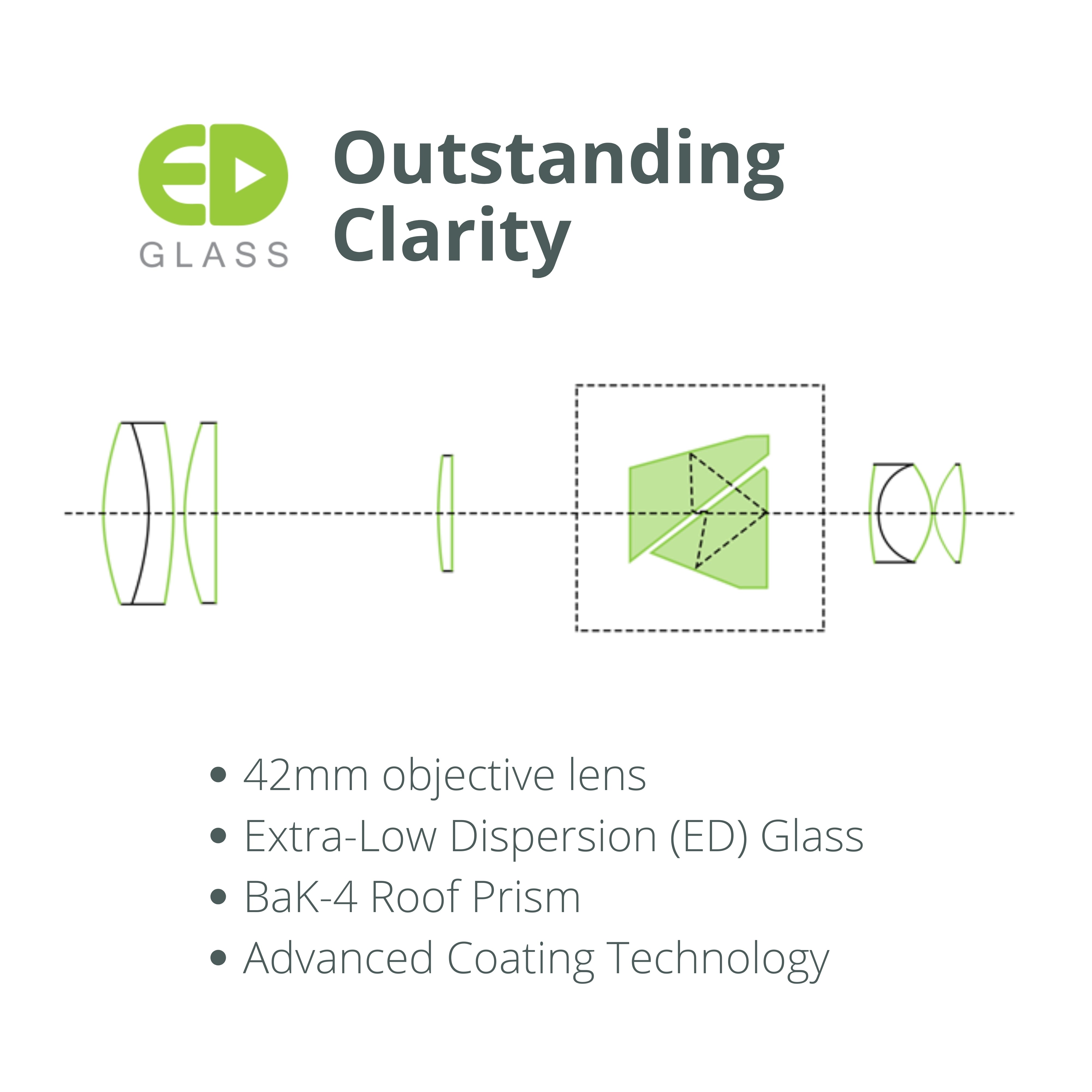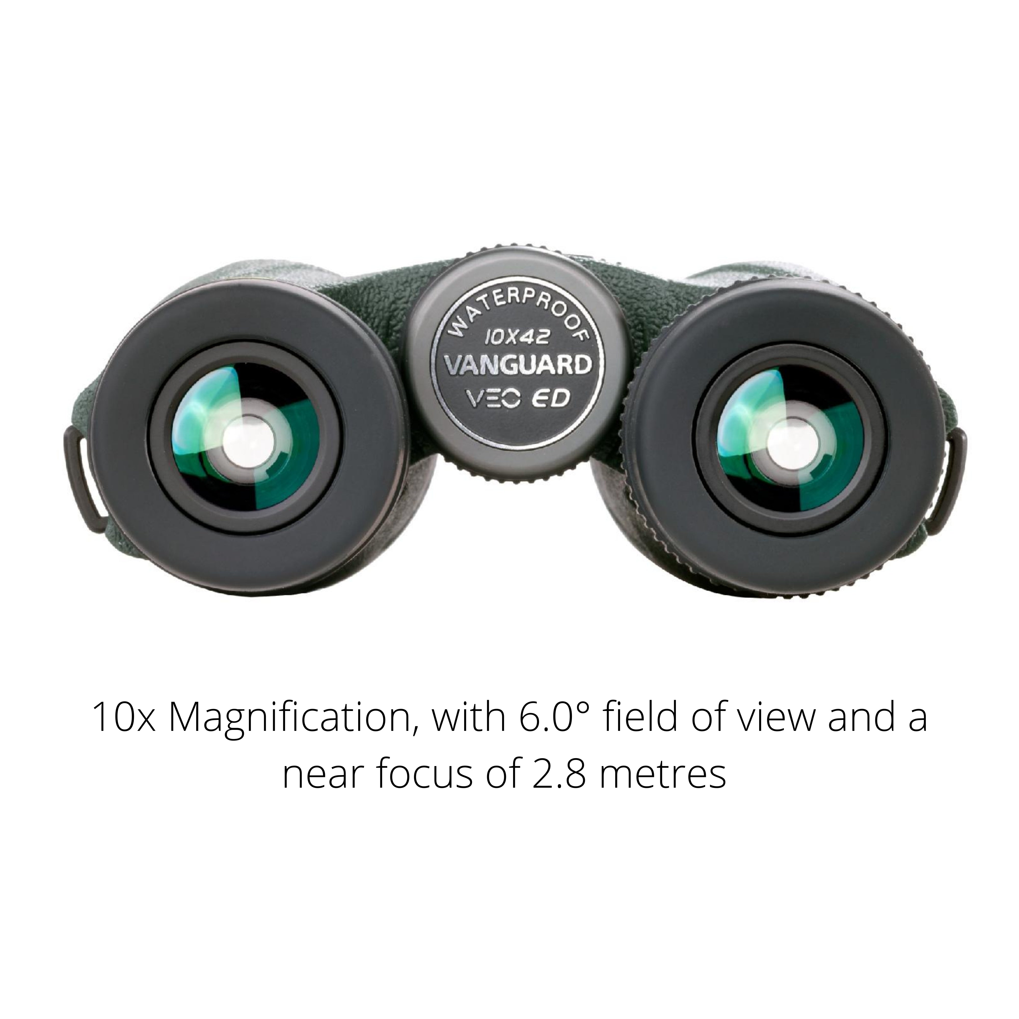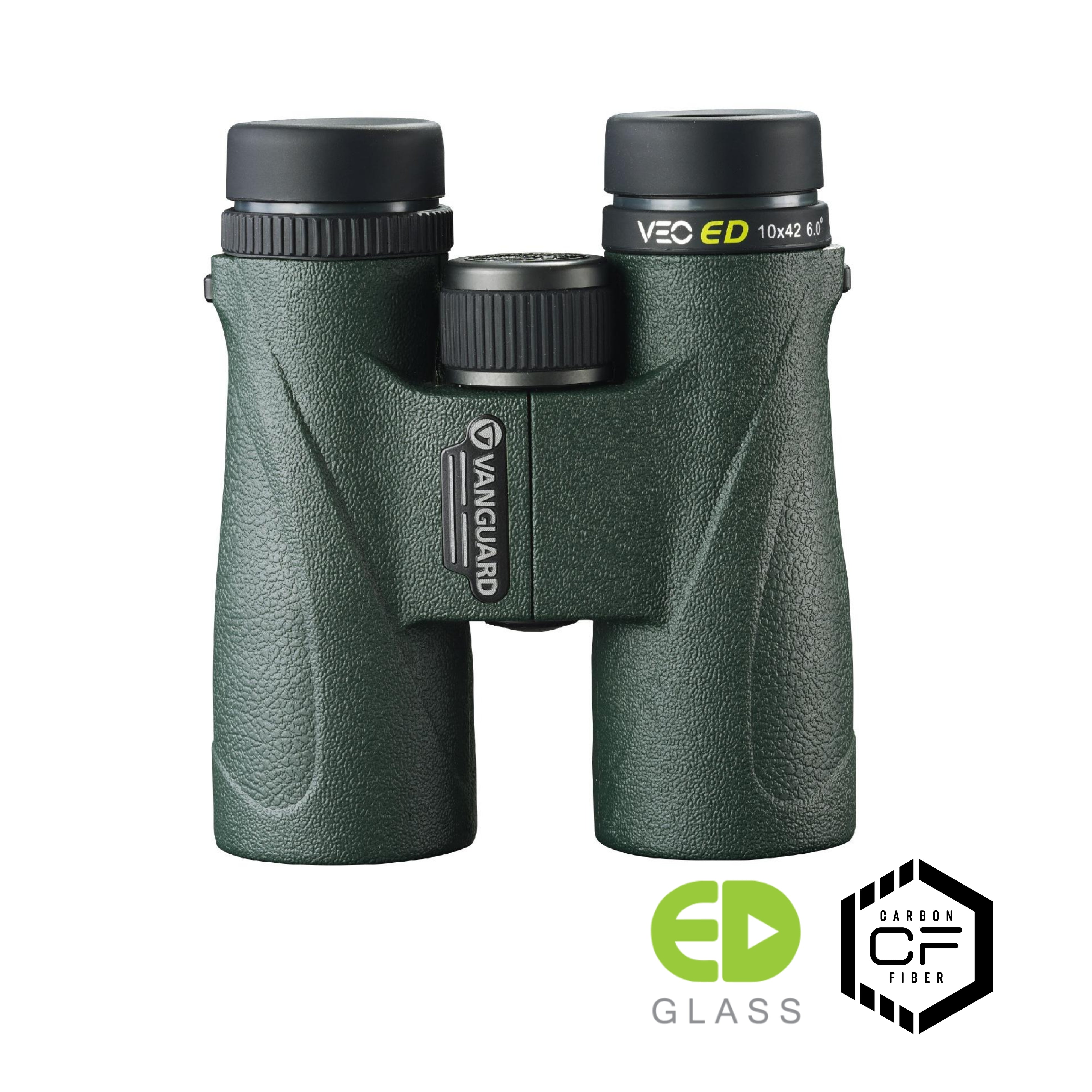 The VEO ED 10x42 is a well-balanced, lightweight, and durable carbon-composite binocular. It is 100% waterproof/fogproof and designed to take on challenging weather conditions. Extra-low-dispersion glass (ED) effectively reduces chromatic aberration and enhances colour resolution and contrast. .
