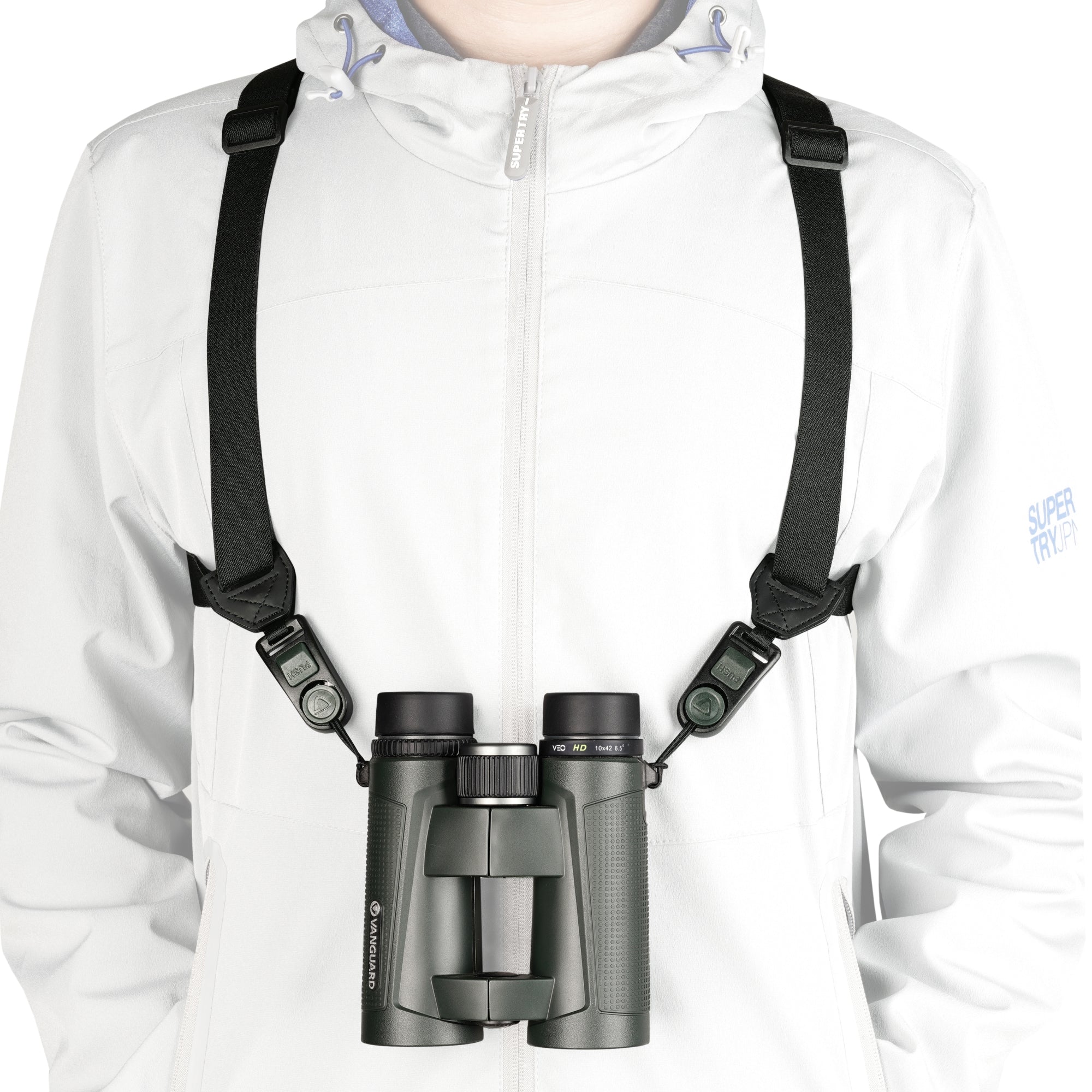 This includes Vanguard's patented quick release system that is included on the neck strap, allowing you to switch between the neck strap and the harness in seconds. It also gives you the option of buying a separate VEO Optic Guard WS wrist strap for shorter trips where speed of access to your binoculars is key, or upgrading your harness to a VEO Optic Guard H DLX deluxe harness for maximum comfort at a later date.
