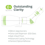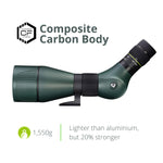 VEO HD 80A Spotting Scope includes a composite-carbon body that is stronger and lighter than aluminium, with an 80mm objective lens and Extra Low Dispersion (ED) Glass.