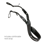 In addition you get a comfortable neck strap to keep your optics close at hand when birding, scouting, or sightseeing, as well as protective covers for both the eye-piece and objective lens.