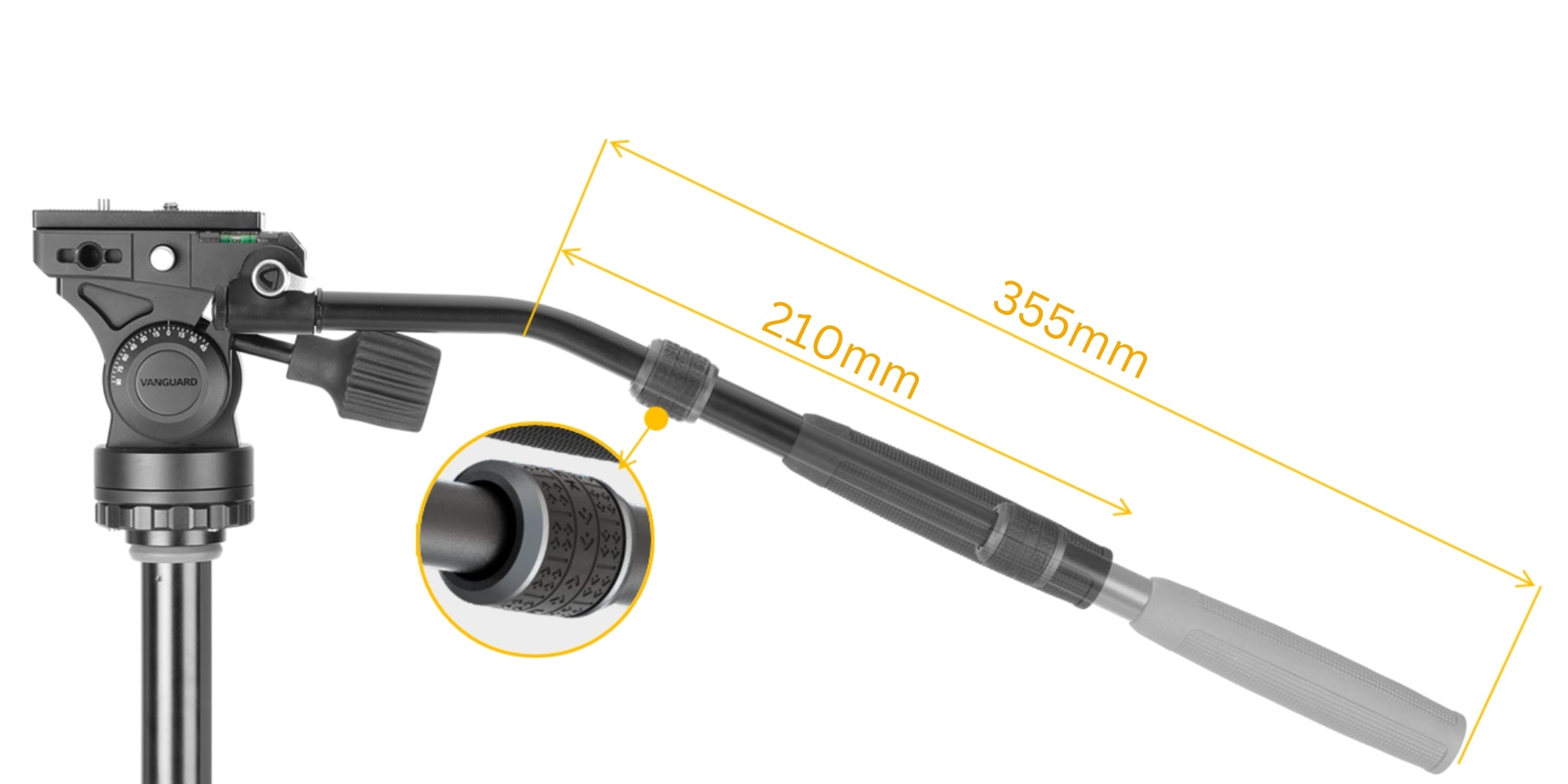 At the rear of the head between the handles is an oversized vertical locking knob that allows the head to be set at -45° to +90°. The speed of movement can be adjusted using the fluid drag lock on the side which can adjust the damping, giving you more control of the movement.