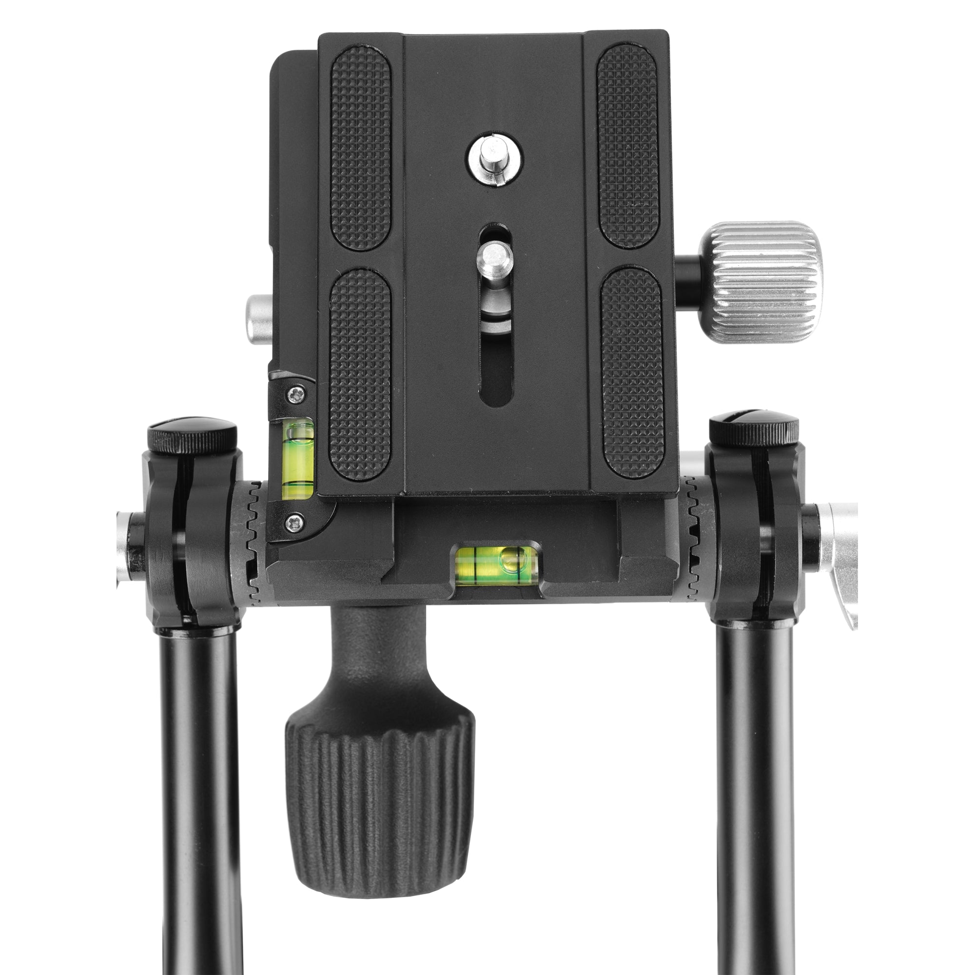 When setting up, the head includes two oversized spirit level vials that make it easy to check your head is level, and a scale on the side of the head allows you to repeat settings with ease.