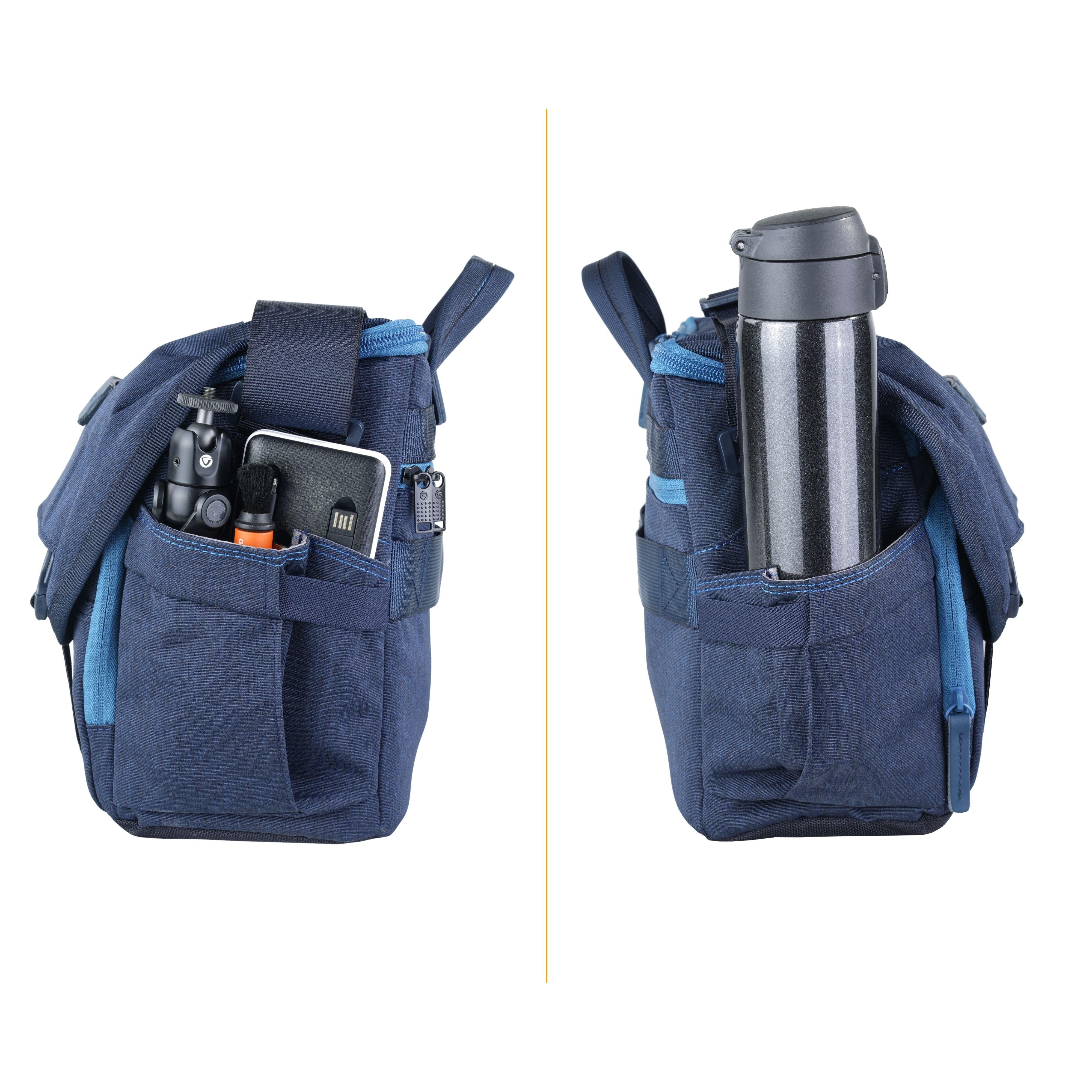 The VEO RANGE 32M messenger bag fits Mirrorless/CSC/Hybrid camera with lens attached, 1-2 lenses, a flash and accessories along with a 13” tablet, with a travel tripod strapped on. Alternatively, set it up to carry a small drone.