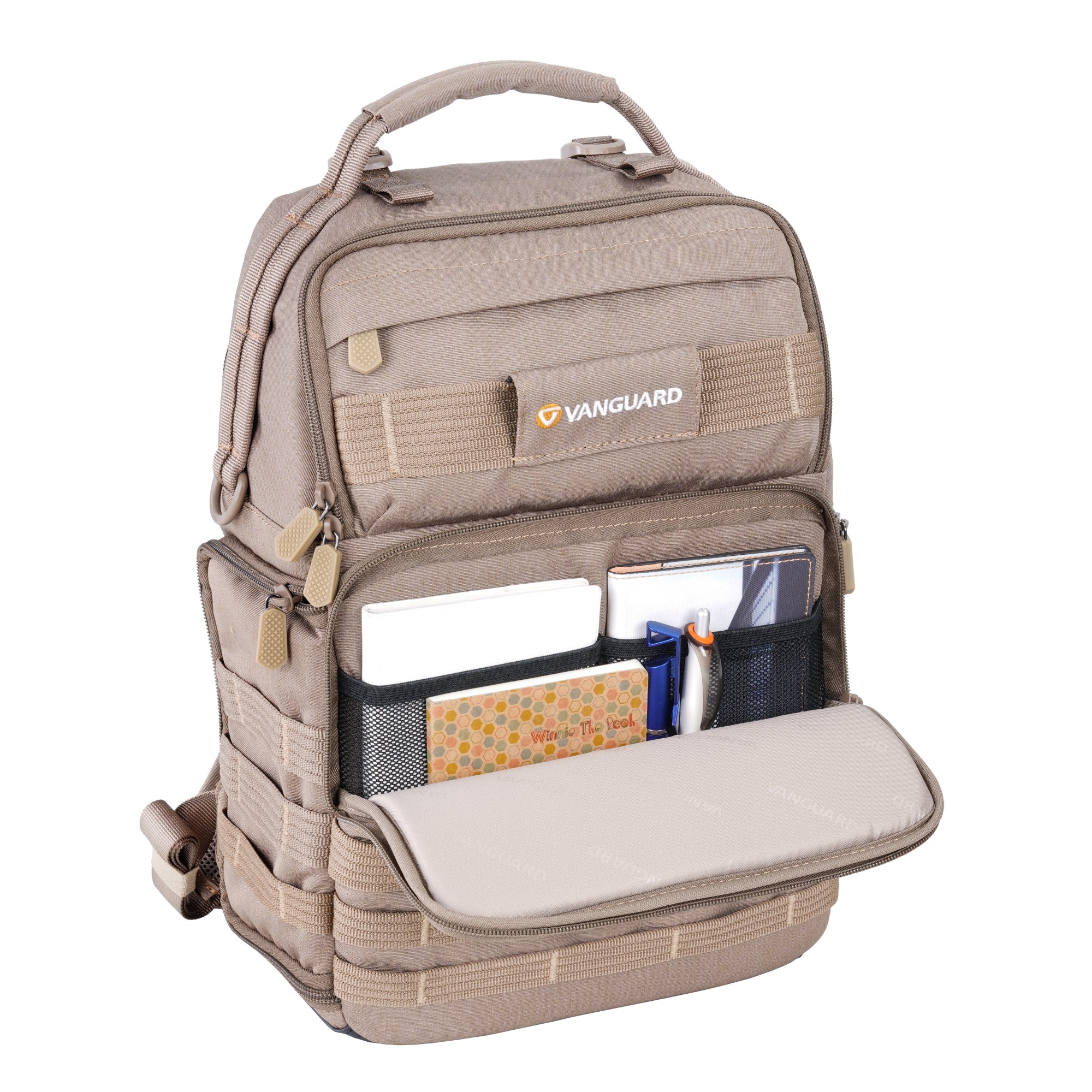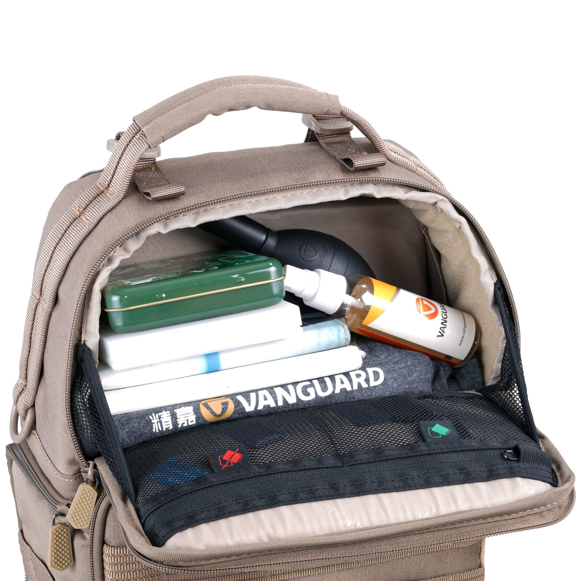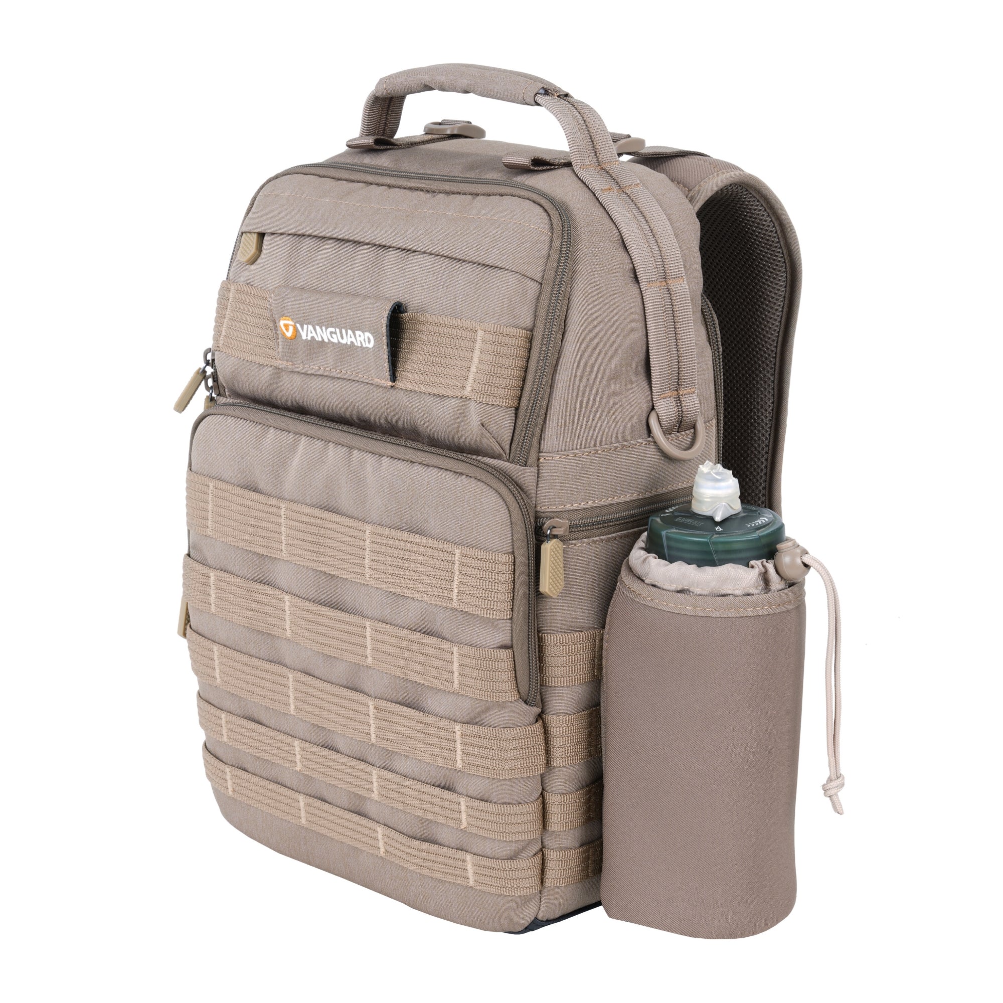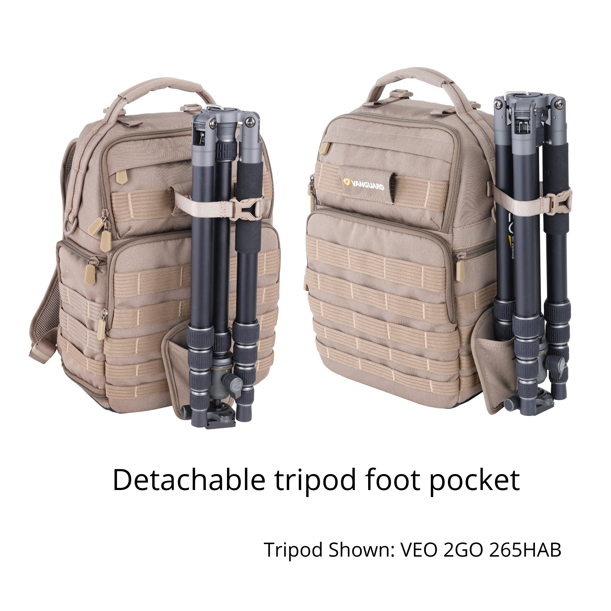 In addition to the versatile interior, the exterior has multiple webbing straps on the front and sides that can be used to attach other accessories. For example, you can attach the tripod foot pocket that comes as standard and, when used with the upper straps provided, which allows you to carry a VEO 3GO travel tripod on the side, or on the front for better balance. This backpack also comes with a detachable bottle holder that can be attached to the webbing when needed for longer trips.