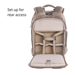 You can decide the best access for you. Full access to your camera and lenses is from the rear for maximum security on the go. Fully opened, this allows you to tailor the interior to your needs. For fast access to your camera on the go, it comes set up for quick side access. You can also remove the daypack compartment and setup the backpack for top front access.