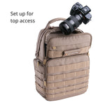 The VEO Range T 37M Tactical Backpack is designed to offer photographers looking to carry a mirrorless camera, 4-5 lenses, a 9.7” tablet and a travel tripod maximum versatility with a customisable interior and exterior webbing.
