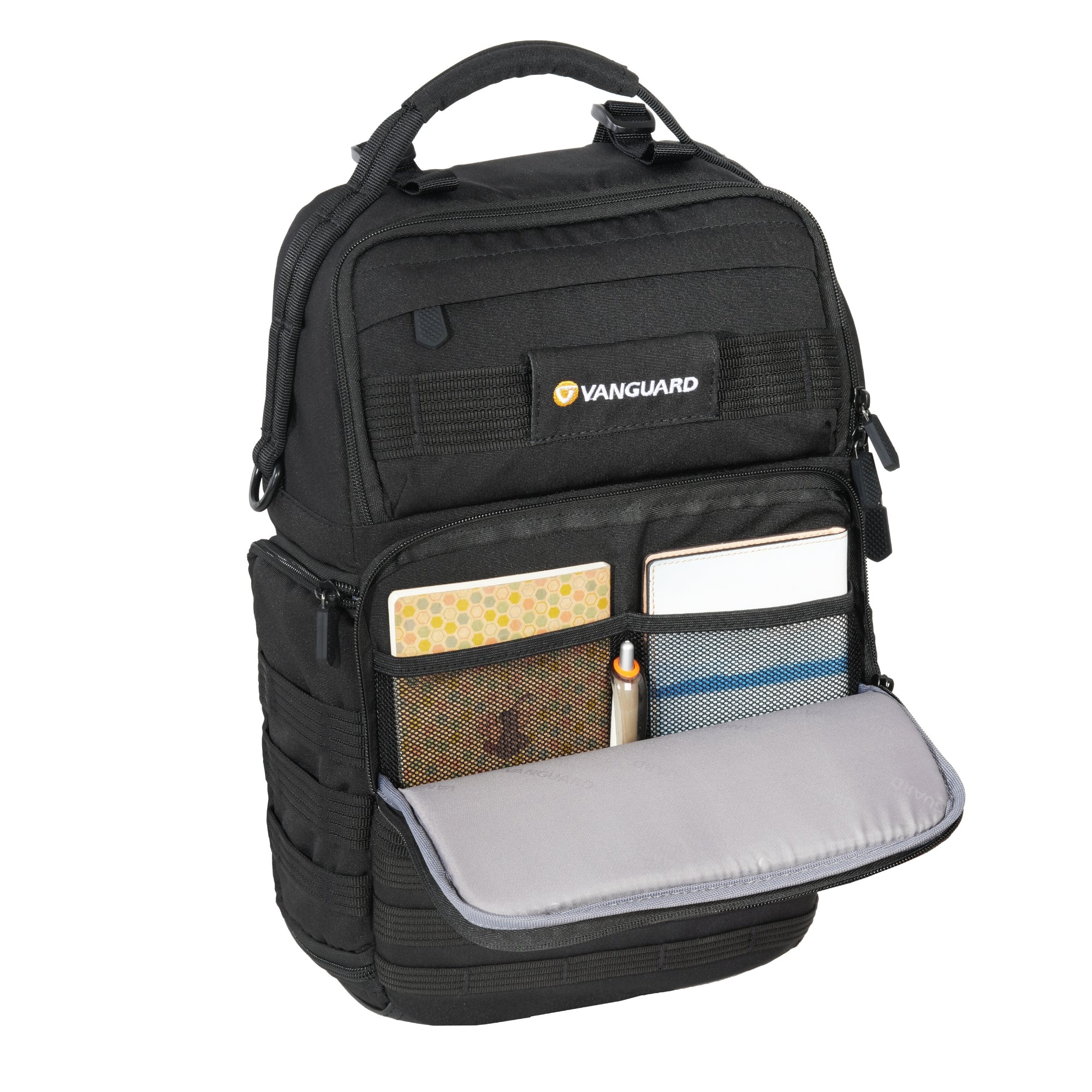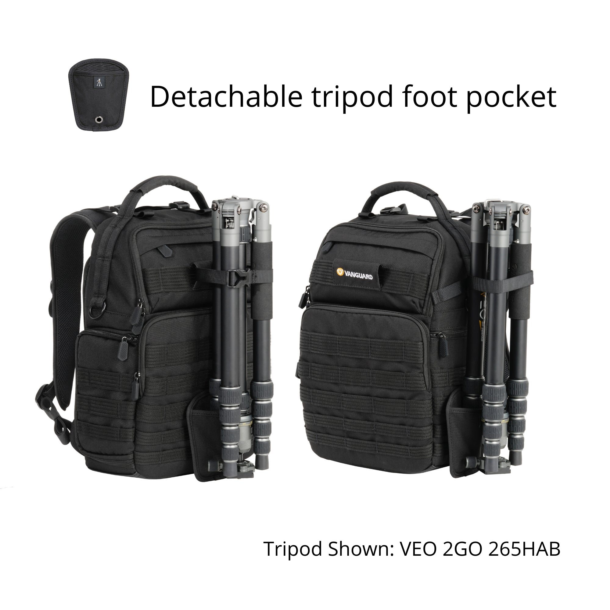 In addition to the versatile interior, the exterior has multiple webbing straps on the front and sides that can be used to attach other accessories. For example, you can attach the tripod foot pocket that comes as standard and, when used with the upper straps provided, which allows you to carry a VEO 3GO travel tripod on the side, or on the front for better balance. This backpack also comes with a detachable bottle holder that can be attached to the webbing when needed for longer trips.