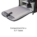 To protect your valuable kit from the lumps and bumps of real life, this backpack is well padded, with extra tall wheels and a reinforced base. To protect your kit from the damp it is manufactured with water resistant material, but also includes a seam sealed rain cover.