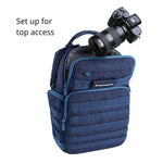 You can decide the best access for you. Full access to your camera and lenses is from the rear for maximum security on the go. Fully opened, this allows you to tailor the interior to your needs. For fast access to your camera on the go, it comes set up for quick side access. You can also remove the daypack compartment and setup the backpack for top front access.