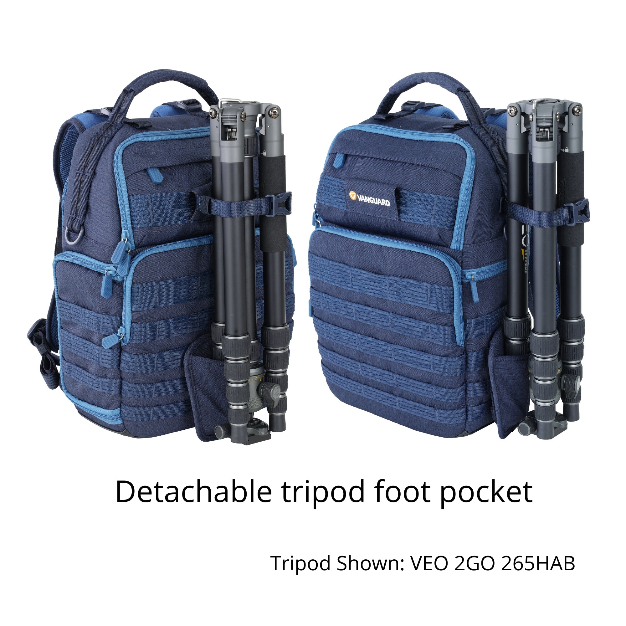 In addition to the versatile interior, the exterior has multiple webbing straps on the front and sides that can be used to attach other accessories. For example, you can attach the tripod foot pocket that comes as standard and, when used with the upper straps provided, which allows you to carry a VEO 3GO travel tripod on the side, or on the front for better balance. This backpack also comes with a detachable bottle holder that can be attached to the webbing when needed for longer trips.