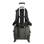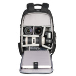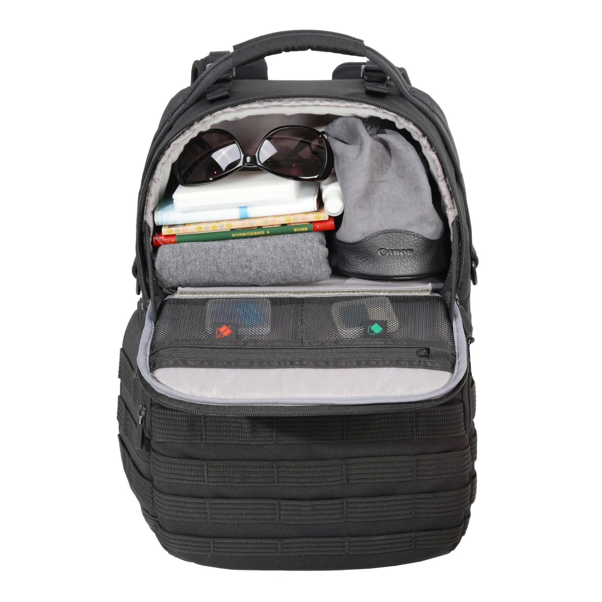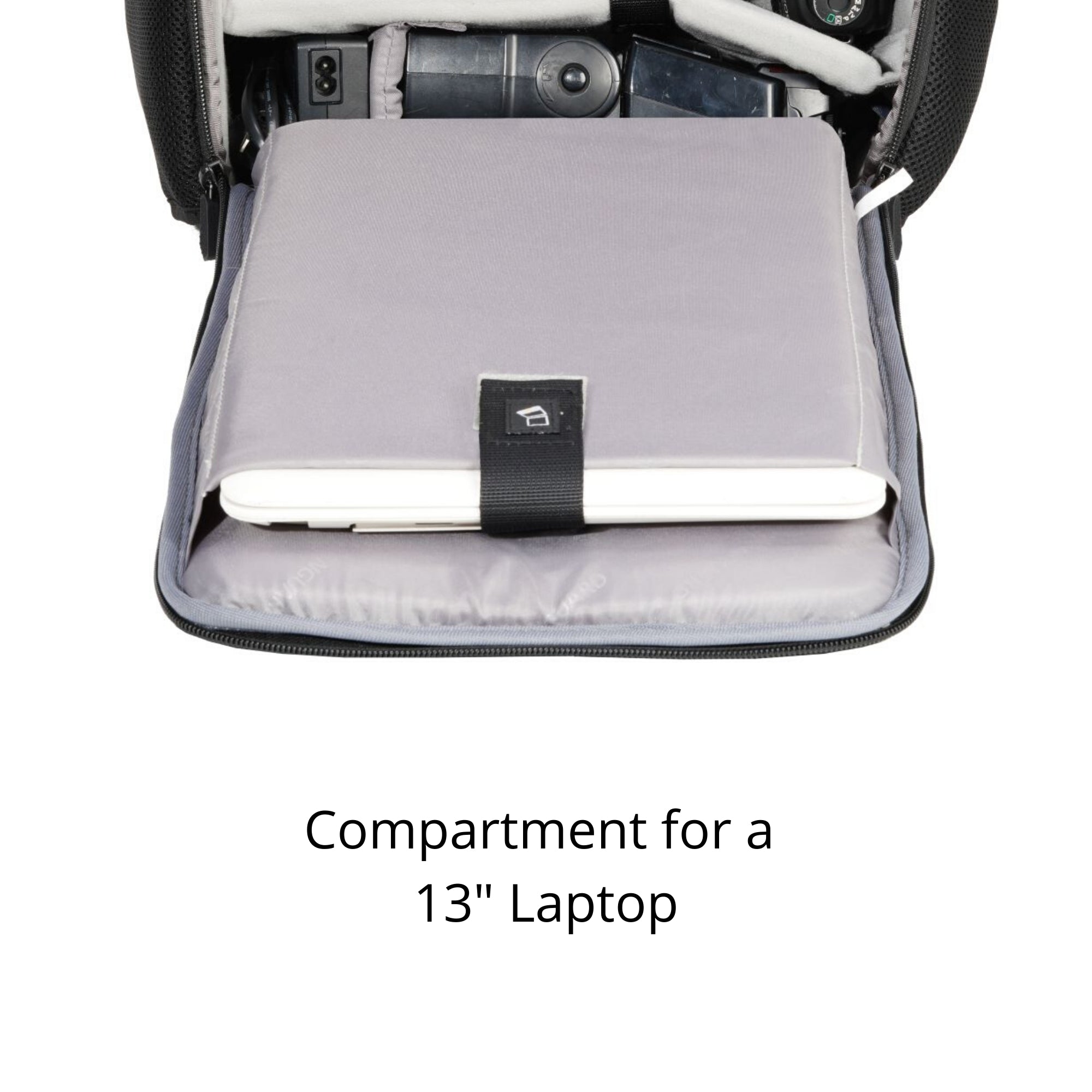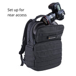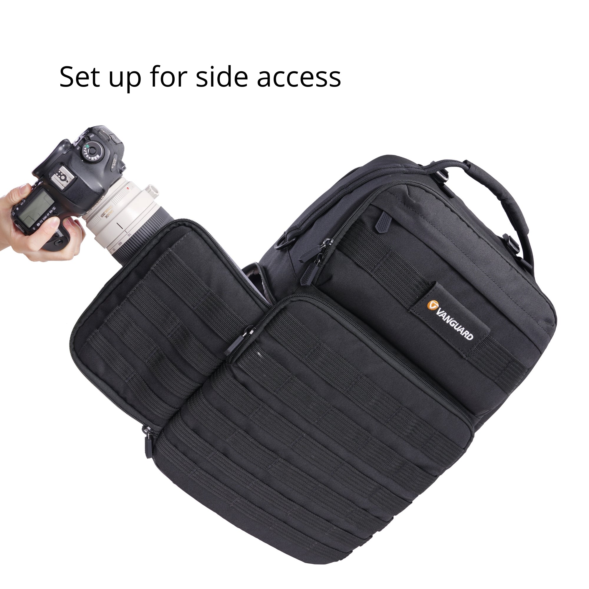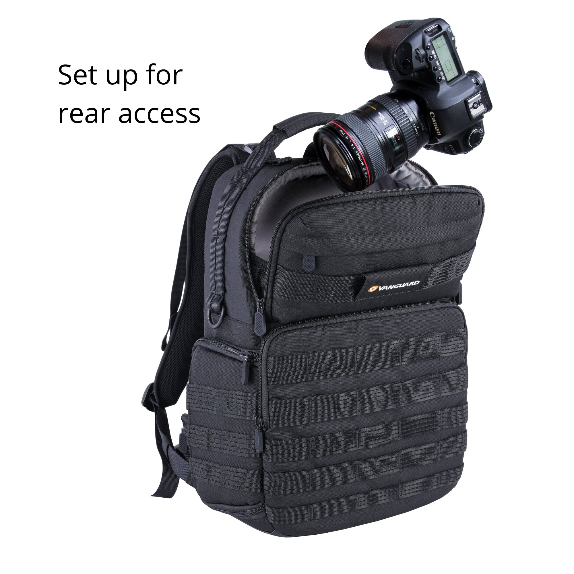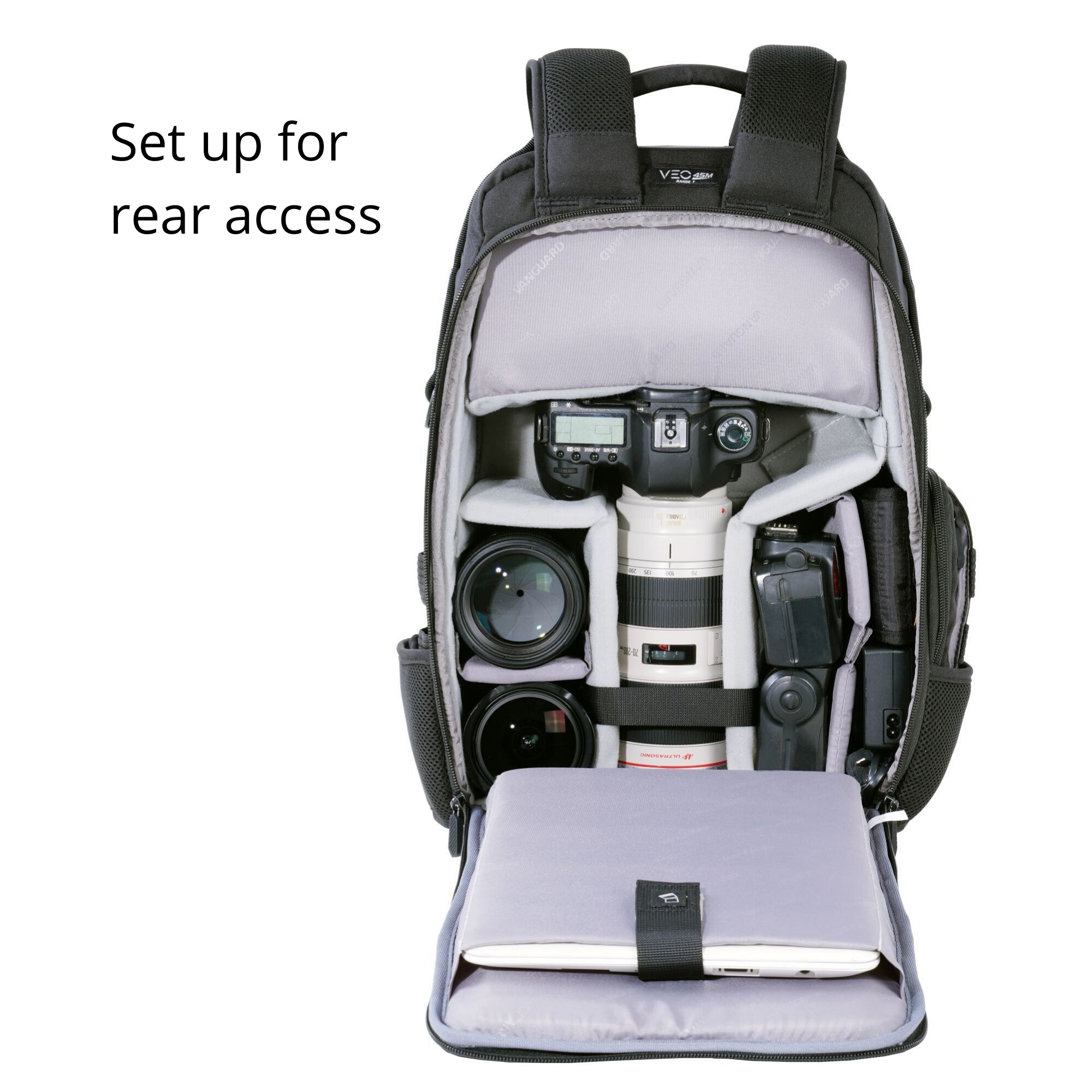 You can decide the best access for you. Full access to your camera and lenses is from the rear for maximum security on the go. Fully opened, this allows you to tailor the interior to your needs. For fast access to your camera on the go, it comes set up for quick side access. You can also remove the daypack compartment and setup the backpack for top front access.