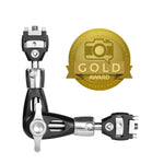 Once the support arm is attached to your tripod, setting the position of the VEO TSA DLX is all controlled through the single locking knob which is oversized for easy grip. Loosening the locking knob loosens the support arm angle joint and the ball joints on either end, so if you have your accessory on it when you do, please make sure you're supporting it to prevent it falling. Position the arm and accessory where it needs to be and tighten the locking knob. It's as simple as that.