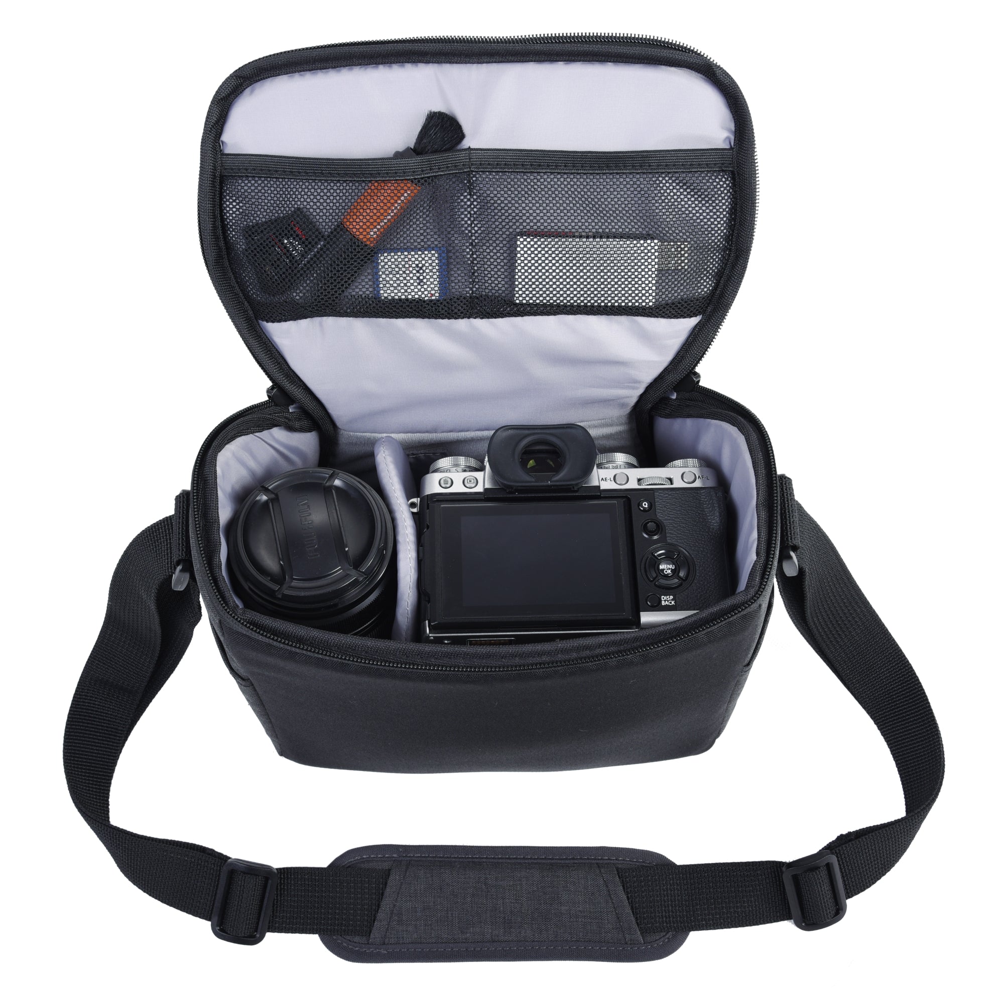 The VESTA Aspire 21 is the ideal compact, lightweight and stylish shoulder bag for a DSLR/mirrorless with 18-55mm lens attached, 1-2 additional lenses (up to 55-200mm), flash, accessories and personal essentials such as a water bottle.