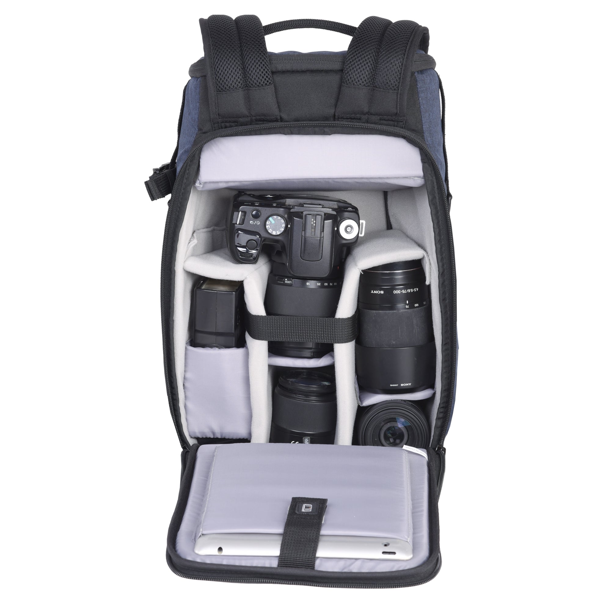 The VESTA Aspire 41 is the ideal compact, lightweight and stylish daypack for a full frame with 50-200mm lens attached, 3-4 additional lenses (up to 70-300mm), 10" tablet, flash, accessories, a travel tripod and personal essentials such as wallet, phone, water bottle. It also includes a removable daypack section for personal kit.